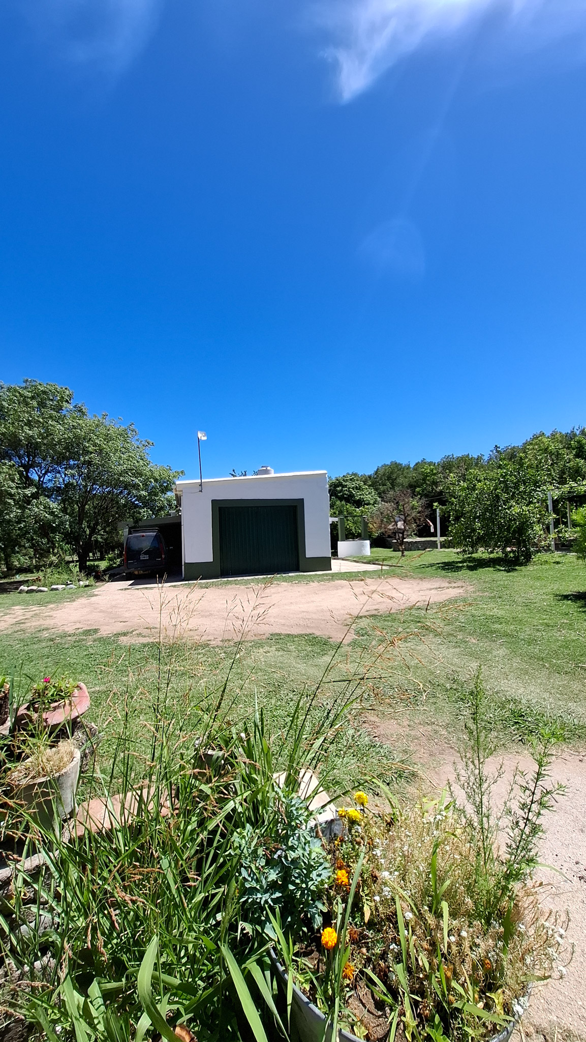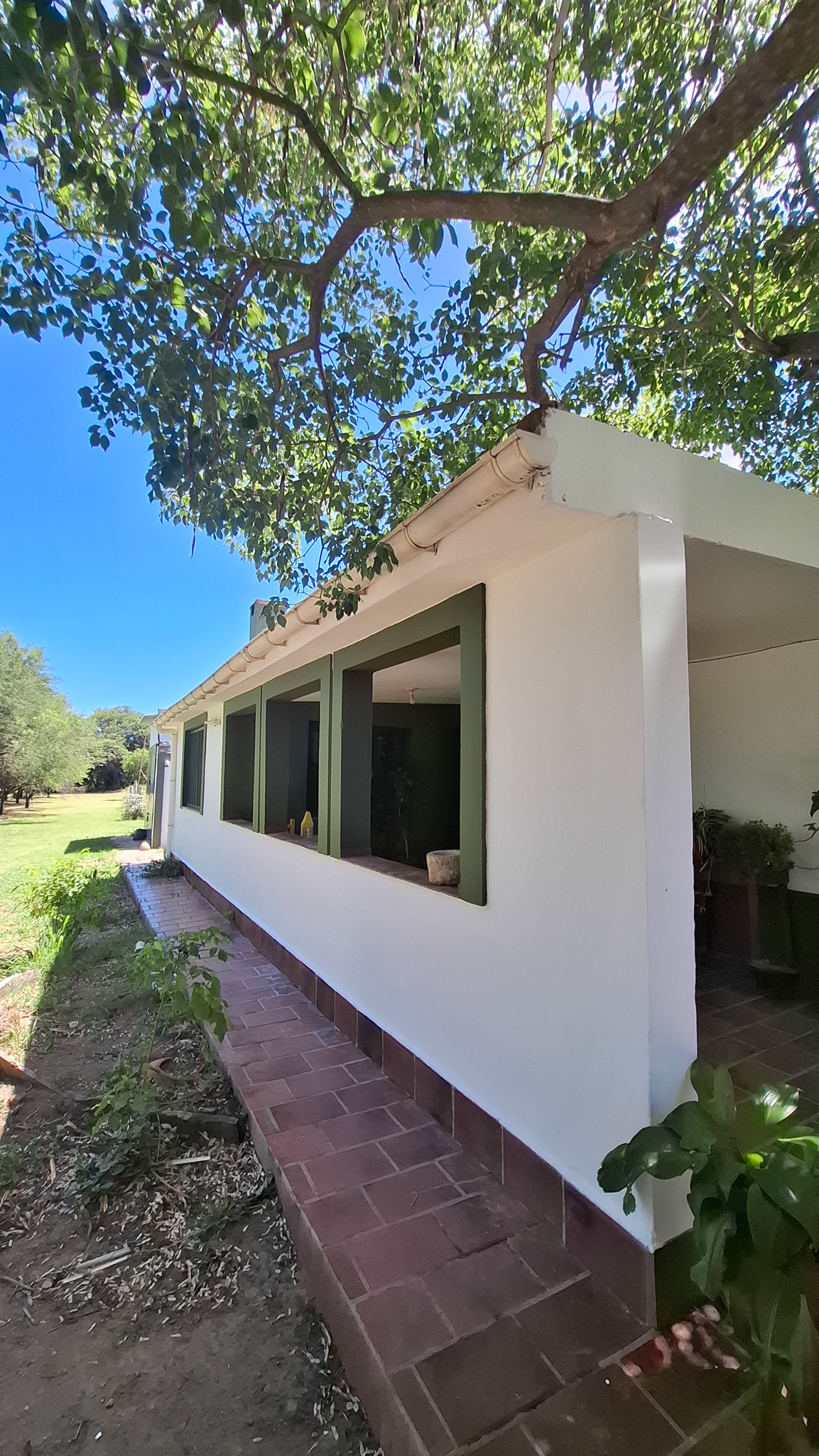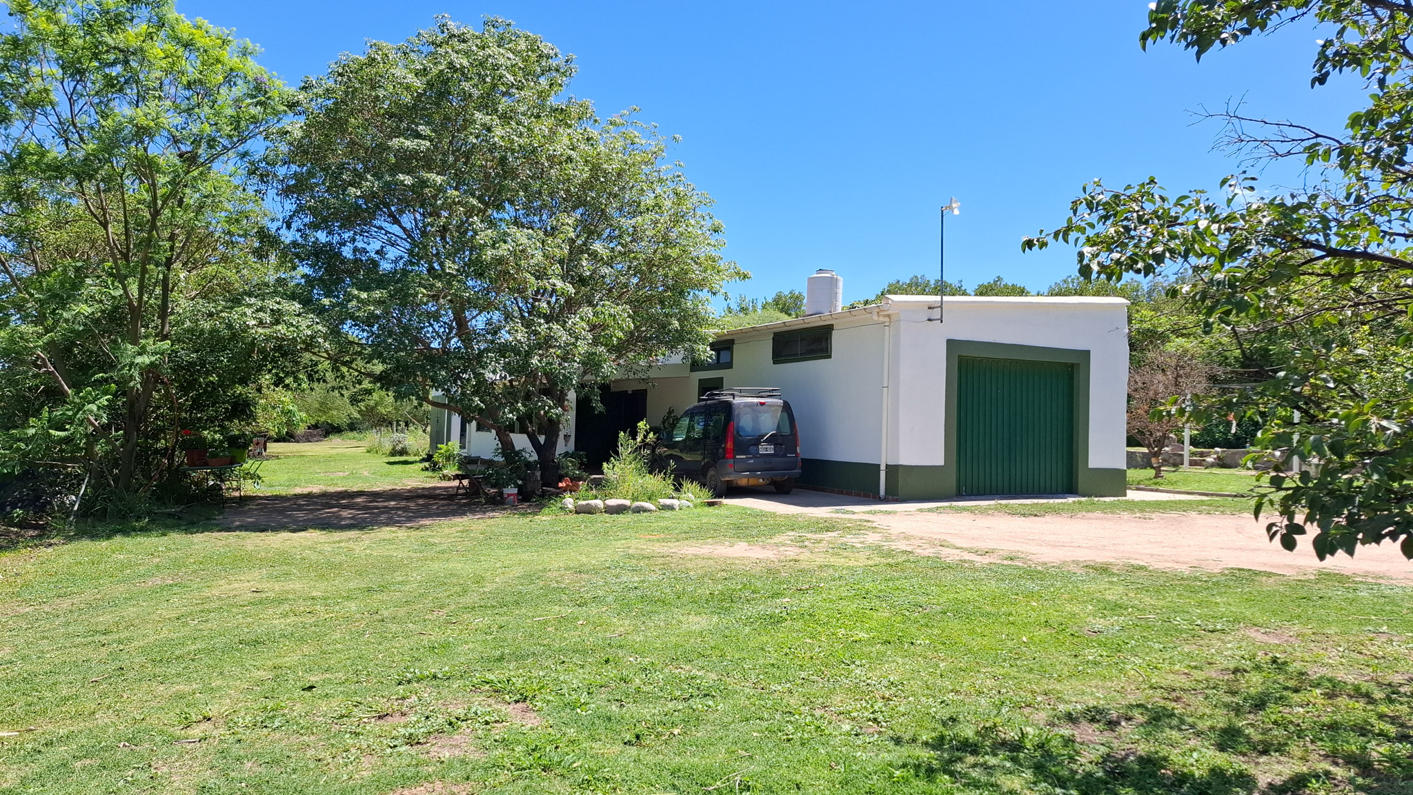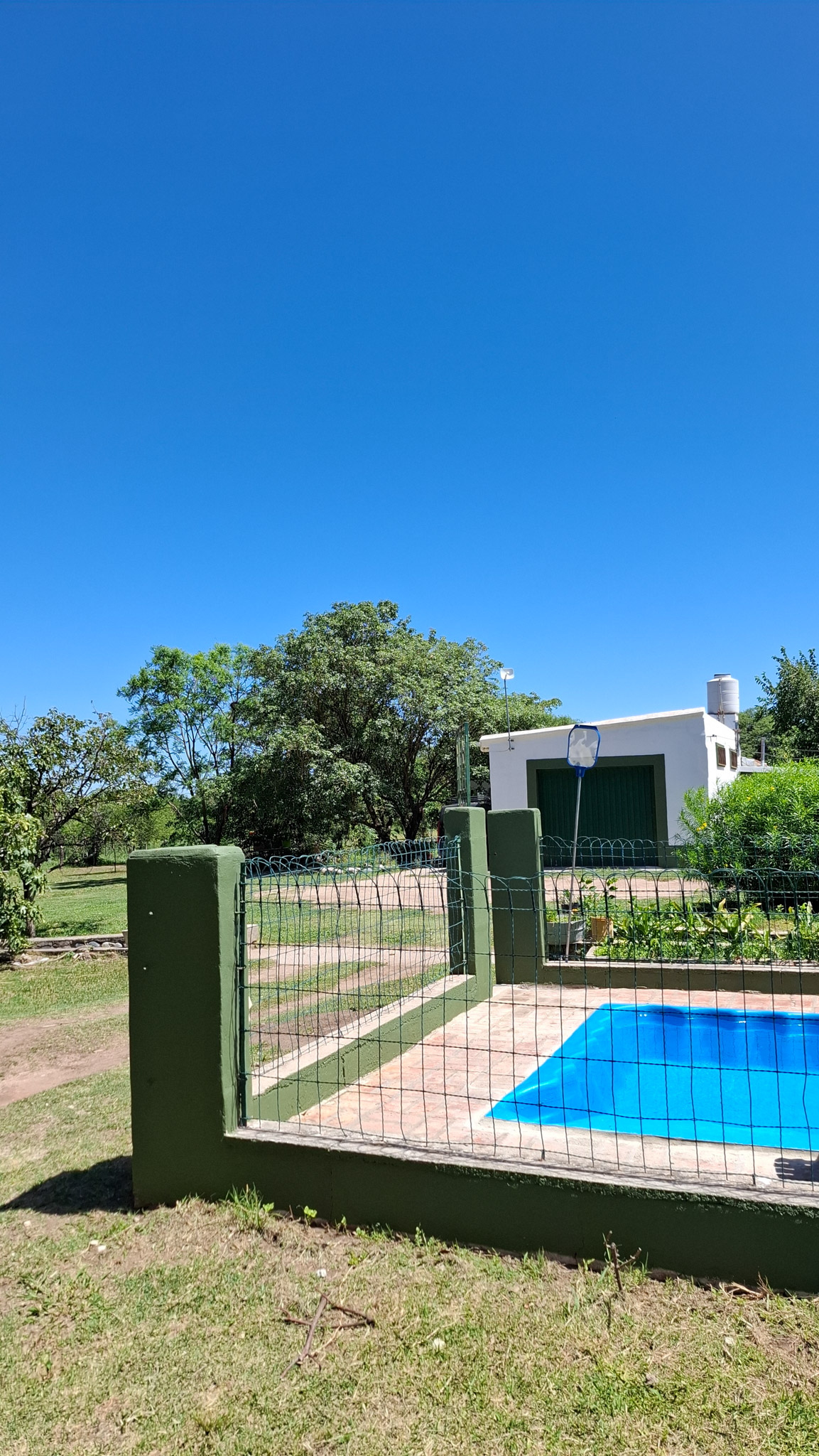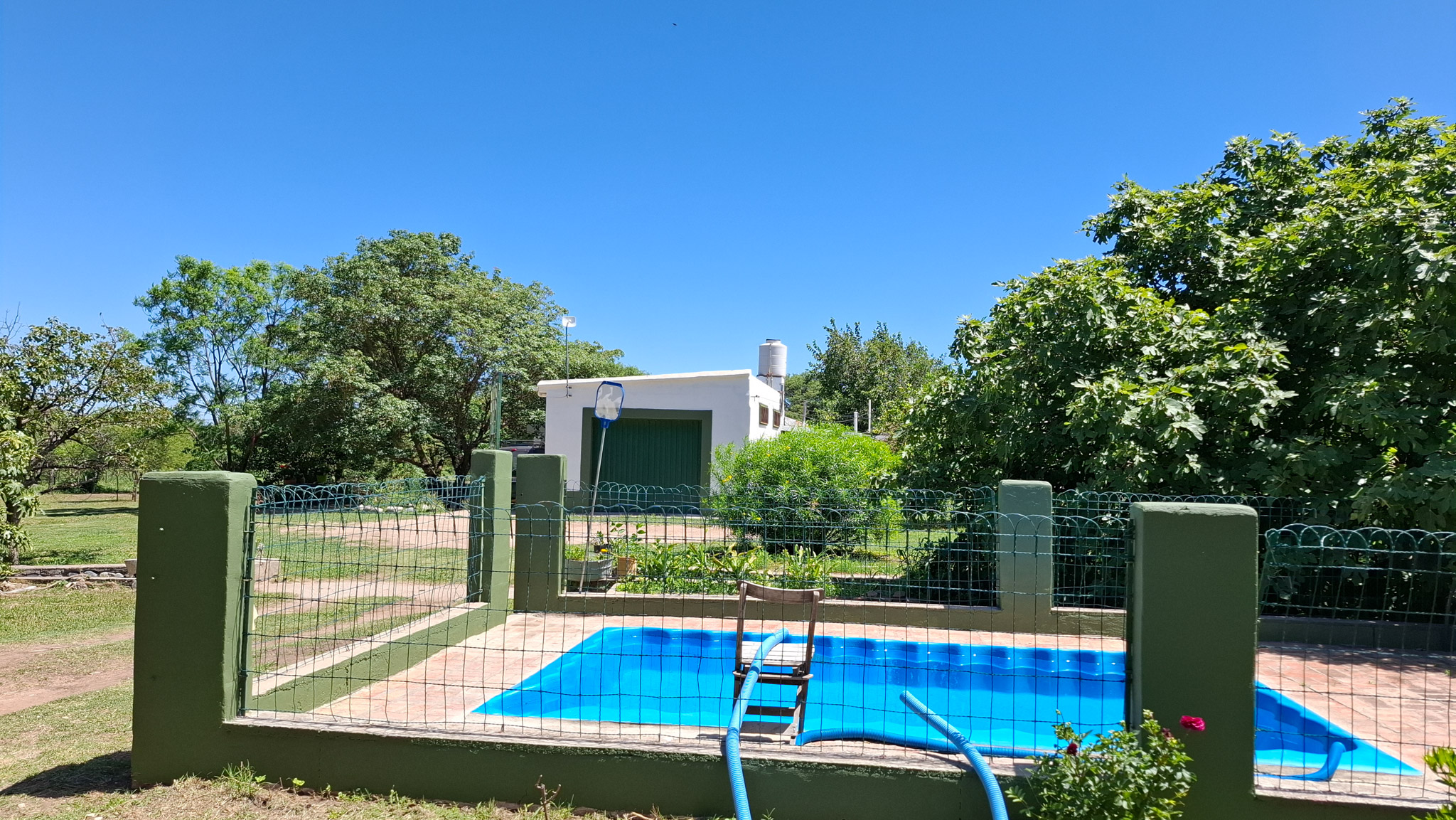 La propiedad presenta una gran casona con cocina, living- comedor con hogar a leña, tres amplios dormitorios, dos baños completos con sus respectivos sanitarios y ducha, un garaje con capacidad para dos vehículos, porche, y un galpón cerrado amplio con acceso independiente. La construcción es sólida, con sus paredes de ladrillo revocado y techo de loza. El Inmueble se encuentra totalmente delimitado por medio de alambrado con sus colindantes y fondo. En uno de sus laterales (este) de manera paralela a la casa corre una acequia principal, empedrada lo que brinda acceso al riego del lote. Los espacios de terreno sin ocupación (patio) poseen arboleda autóctona y gran variedad de frutales, lo que proporciona a la propiedad la posibilidad de cultivo por la buena calidad de la tierra.