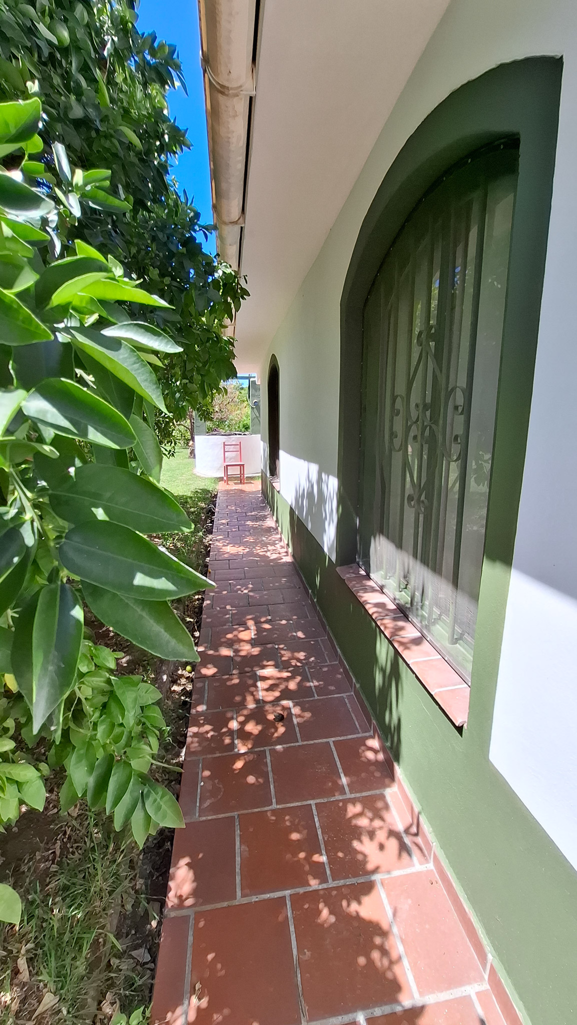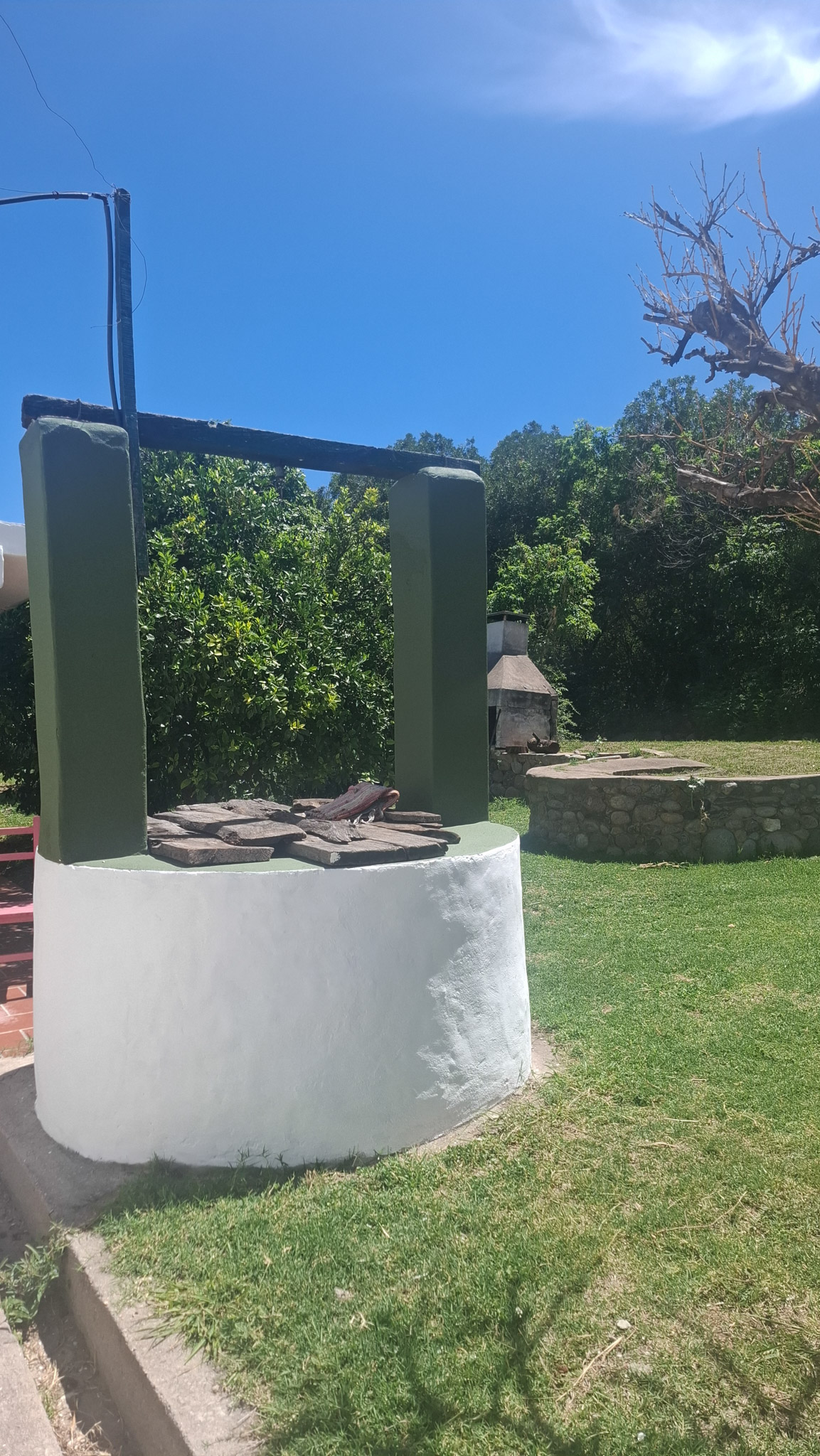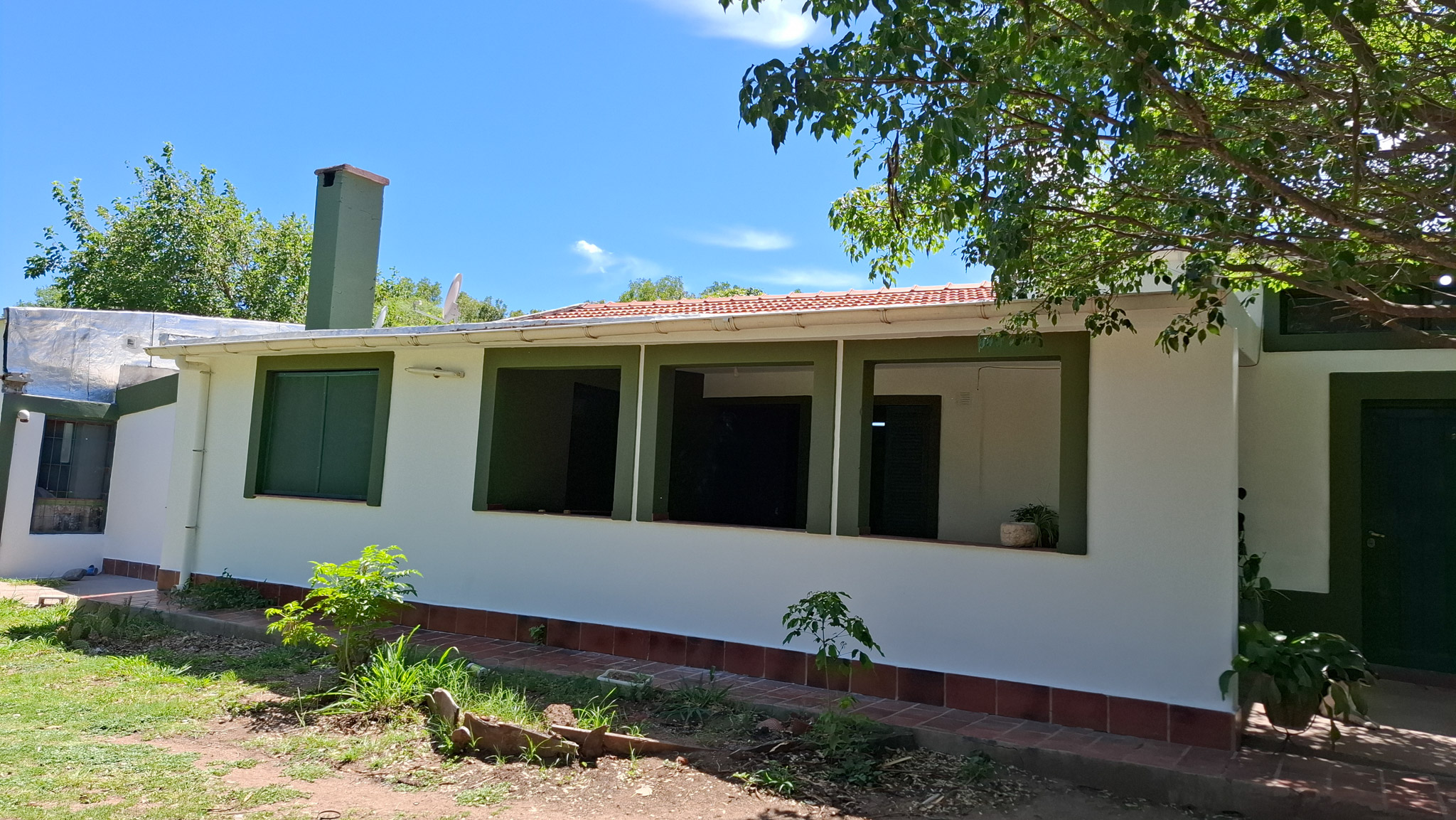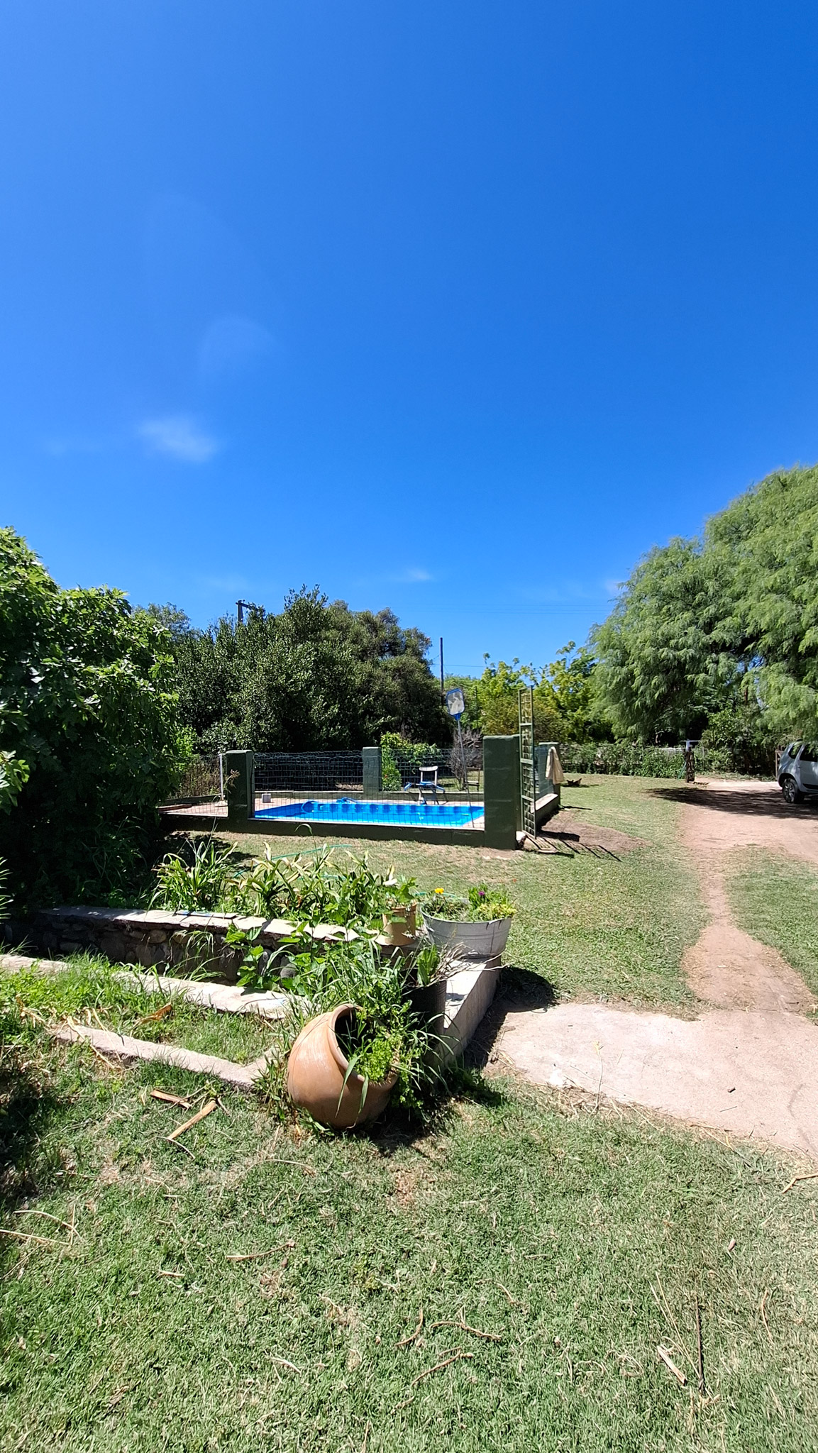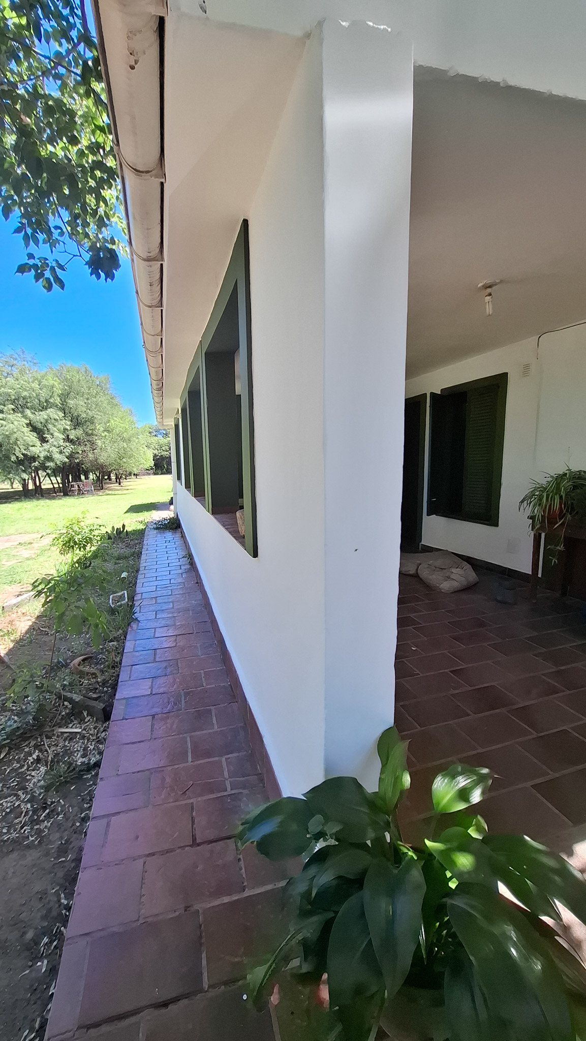 La propiedad presenta una gran casona con cocina, living- comedor con hogar a leña, tres amplios dormitorios, dos baños completos con sus respectivos sanitarios y ducha, un garaje con capacidad para dos vehículos, porche, y un galpón cerrado amplio con acceso independiente. La construcción es sólida, con sus paredes de ladrillo revocado y techo de loza. El Inmueble se encuentra totalmente delimitado por medio de alambrado con sus colindantes y fondo. En uno de sus laterales (este) de manera paralela a la casa corre una acequia principal, empedrada lo que brinda acceso al riego del lote. Los espacios de terreno sin ocupación (patio) poseen arboleda autóctona y gran variedad de frutales, lo que proporciona a la propiedad la posibilidad de cultivo por la buena calidad de la tierra.
