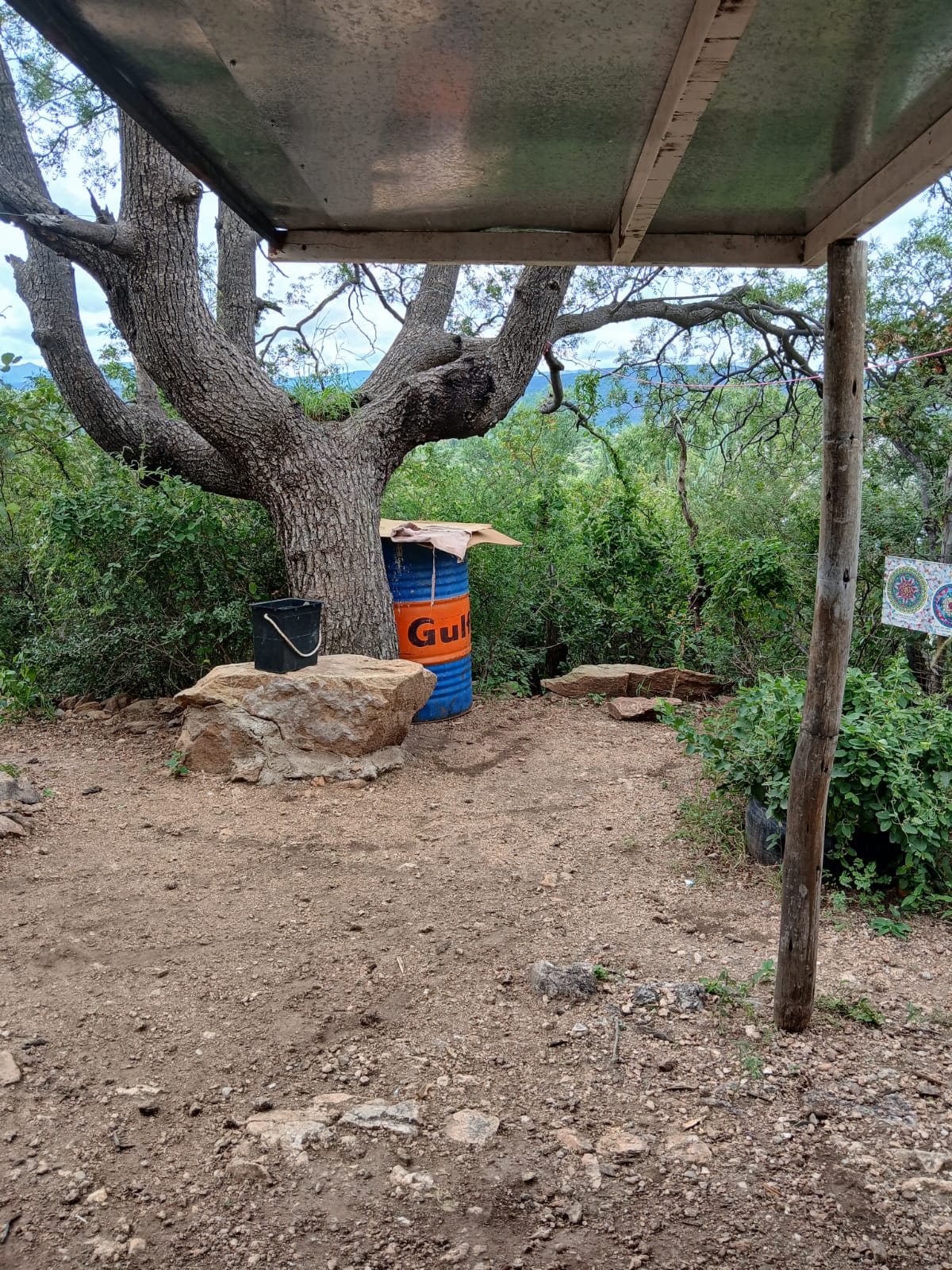Con ingreso independiente, construcción en barro, se encuentra un baño seco con ducha, inodoro y bacha, con ingreso independiente.