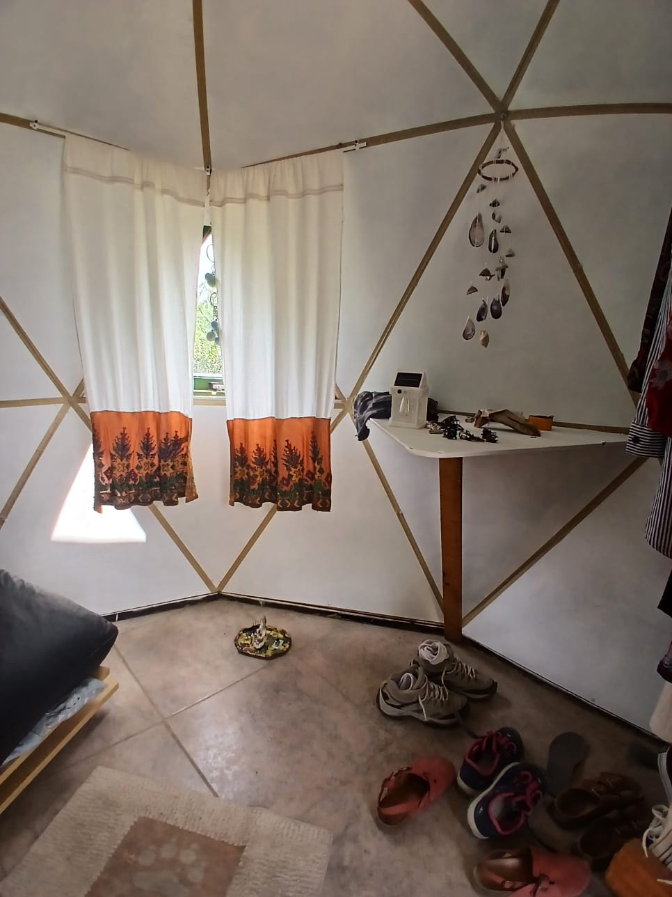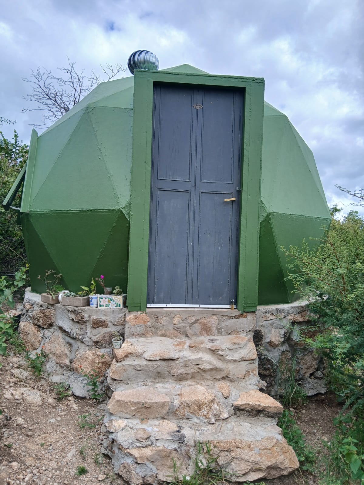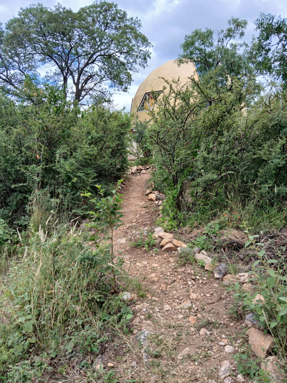El Terreno tiene una superficie total de 1.134.17m2, donde se encuentran dos Domos, uno como casa principal, de 40m2 (7.50 x 4.80), estructura de madera, revestimiento térmico a terminar, piso flotante, falta conexion de agua y electricidad. Esta plantado sobre una base de cemento. Bajo la base, se generó un espacio de cocina, con mesada, anafe, instalación de agua. En la misma propiedad, se encuentra otro domo chico, 3mts. de diametro x 2mts de alto, de un solo ambiente, terminado en su totalidad, solo falta conexion de energia.