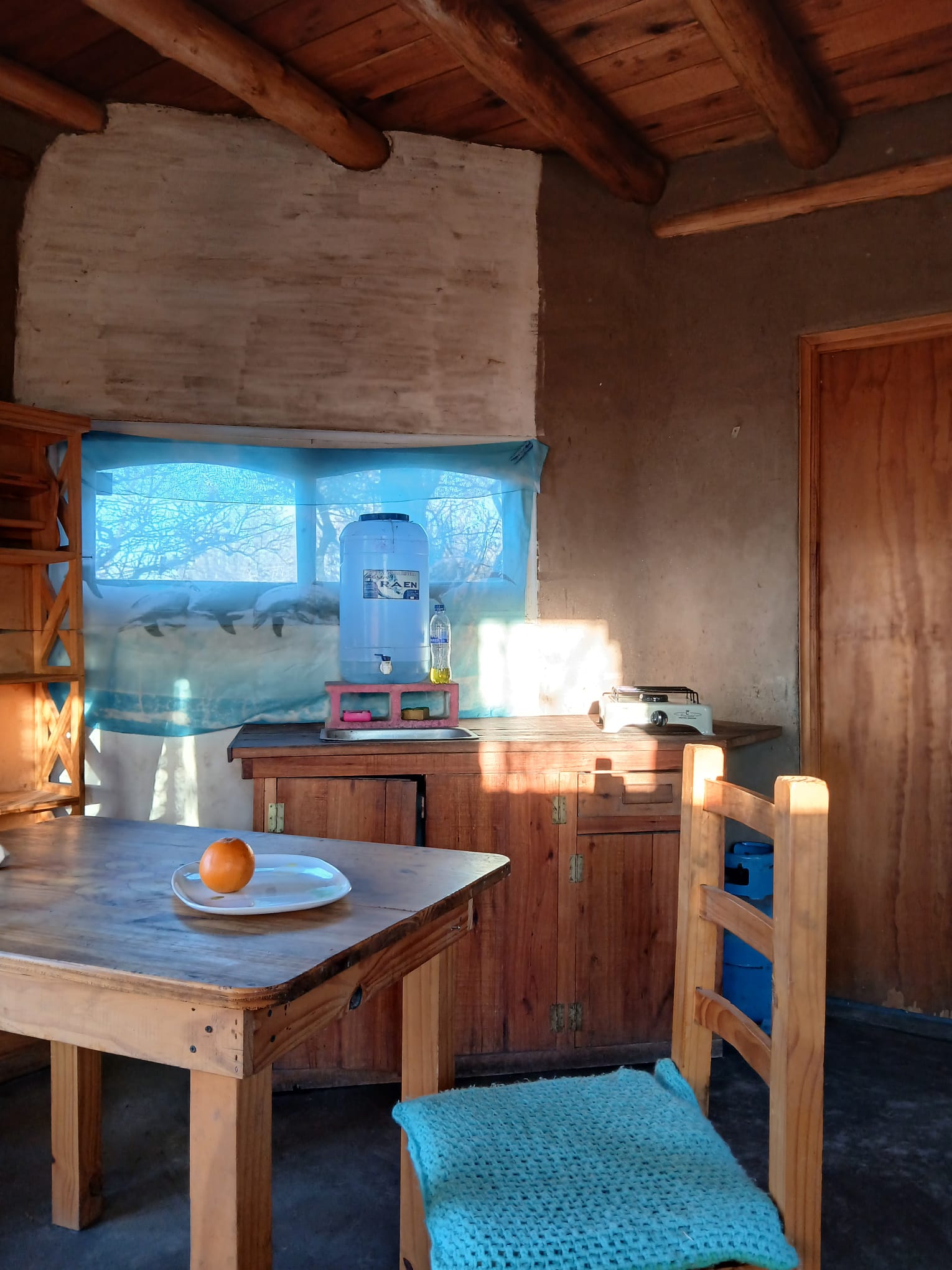 Construida con paredes de barro y un diseño octogonal, ofrece un espacio armónico, sustentable y en contacto directo con la naturaleza.
