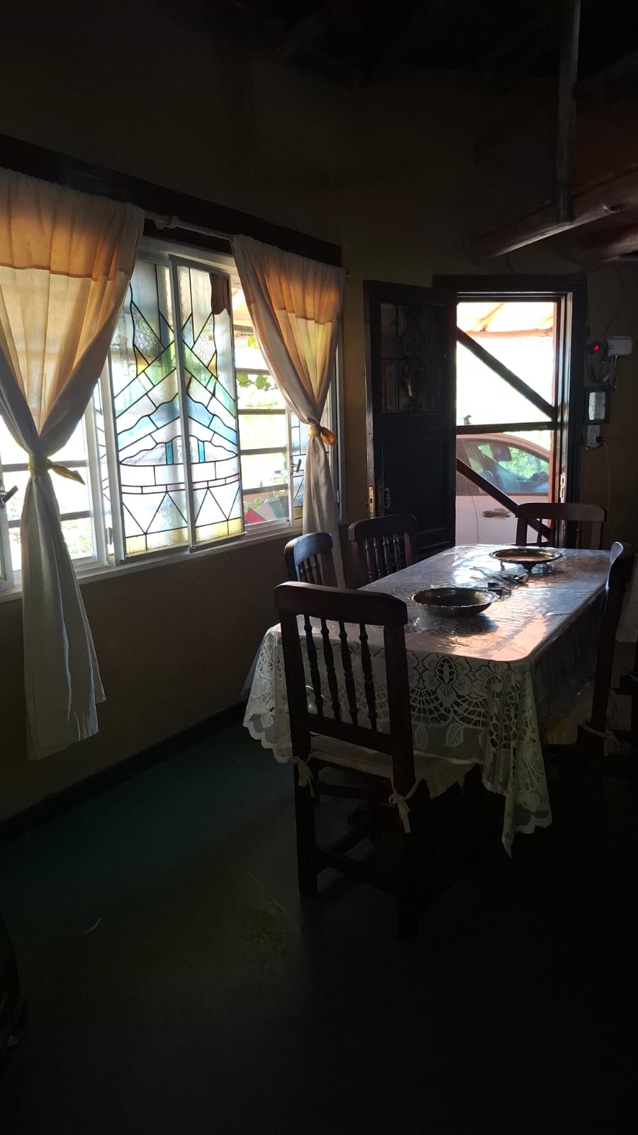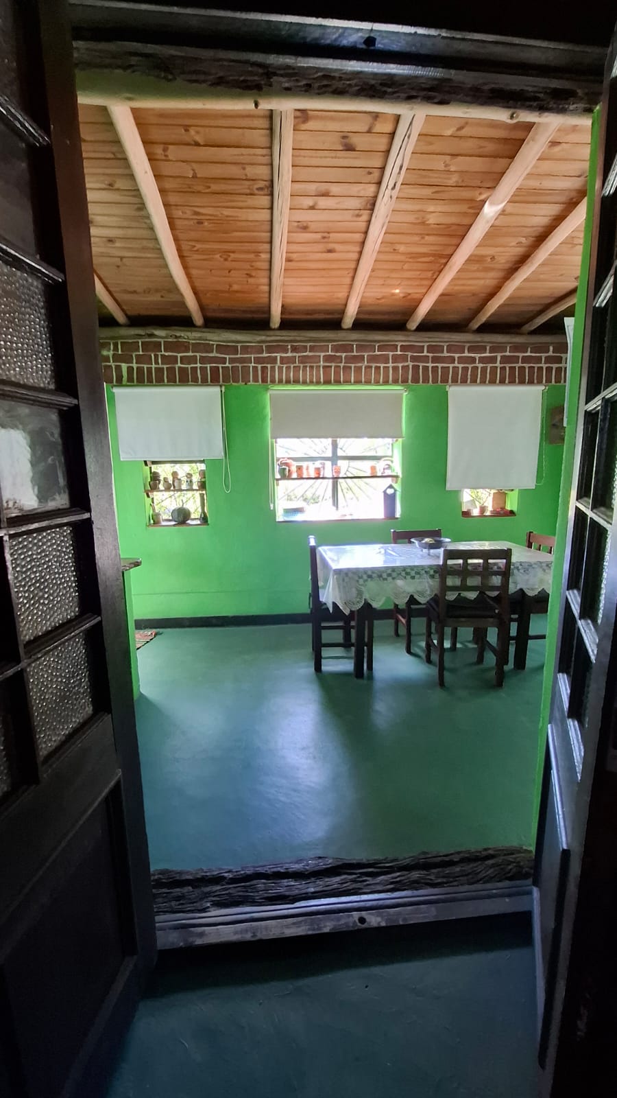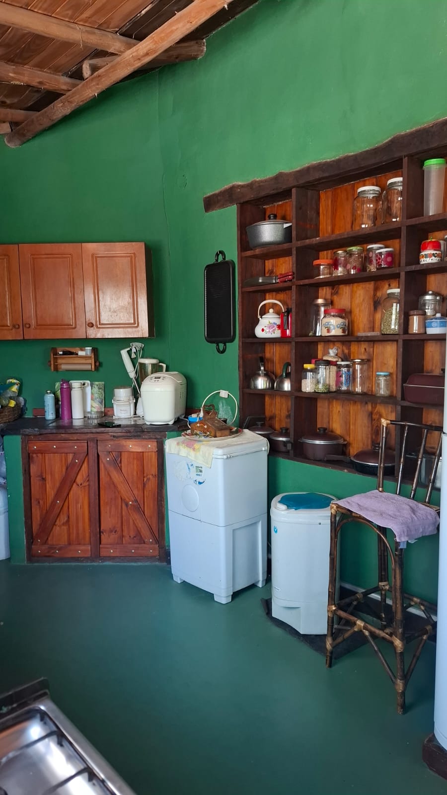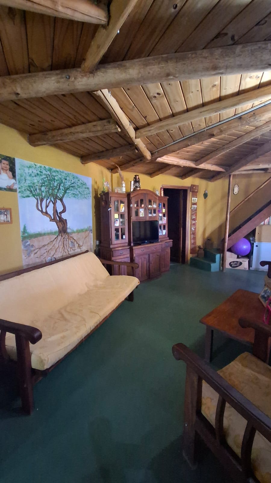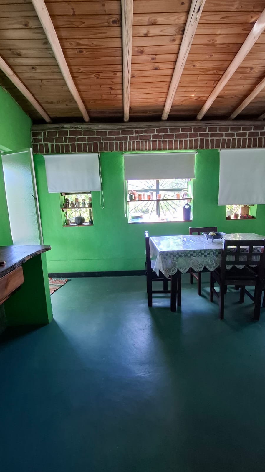 - Cocina-Comedor: Integrados, con mesada, bajomesada y alacena de madera rústica. Equipado con cocina económica.